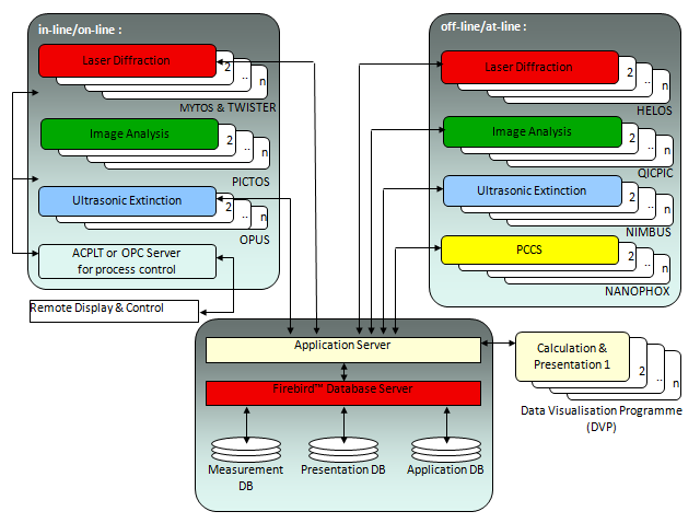 лазерная дифракция: HELOS, MYTOS, MYTIS; затухание ультразвуковых волн: OPUS, NIMBUS; анализ изображений: QICPIC, PICTOS, PICTIS, PICCELL; спектроскопия кросс-корреляции фотонов: NANOPHOX |