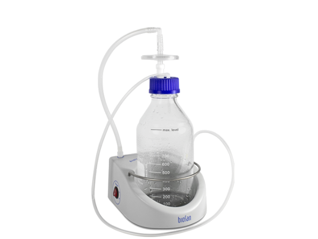 Аспирационный микробиологический фильтр устраняет риск выхода бактерий, вирусов и инфекционных частиц из колбы-ловушки. Аспирационный микробиологический фильтр — гидрофобен: задерживает частицы размером больше 0,027 мкм, что меньше вирусов гепатитов A, B и С, с эффективностью до 99,9%.