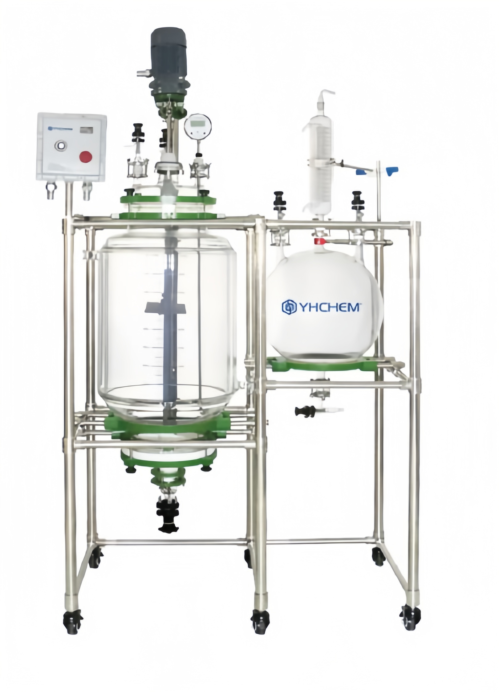 Стеклянный реактор (твердофазный реактор) используется преимущественно для перемешивания, фильтрации, вакуумной фильтрации, синтеза пептидов, кристаллизации и других процессов. Фильтрационная пластина твердофазного реактора изготовлена из ПТФЭ и соединена с корпусом реактора через фланец, что обеспечивает удобство разборки, очистки и замены. В отличие от стандартных реакторов, эта модель оснащена функцией фильтрации, включая вакуумную фильтрацию, а корпус из боросиликатного стекла отличается высокой прозрачностью, что позволяет легко наблюдать за процессом.