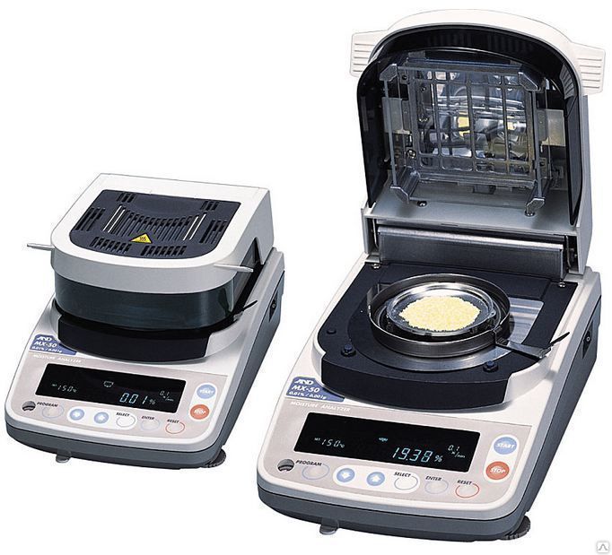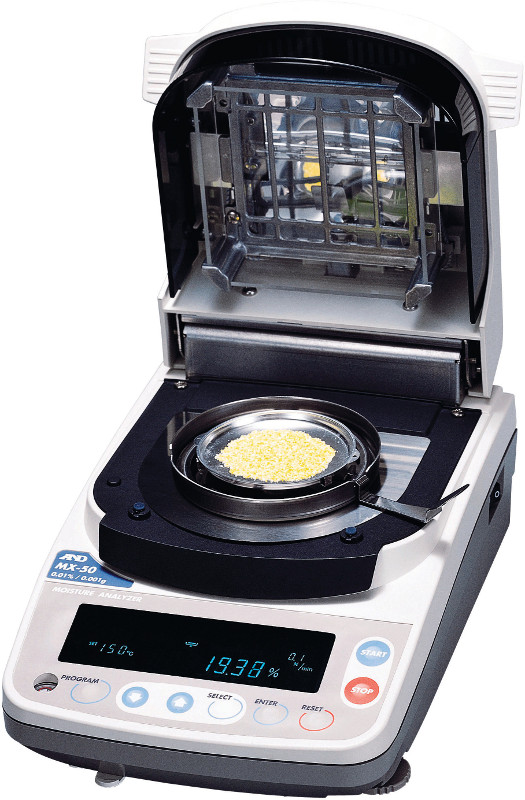 A&D MF-50 — это анализатор для определения влагосодержания в твердых, жидких и парообразных материалах максимальным весом образца 51 гр. методом нагрева, что позволяет получить точный результат с помощью 10 автоматических программ измерения с погрешностью до 0.05% влажности.