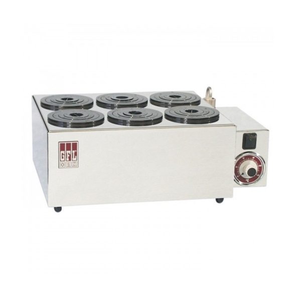Баня водяная GFL 1031 специально разработана для работы в вытяжных шкафах благодаря компактному расположению гнезд для сосудов и обилию рабочих мест.