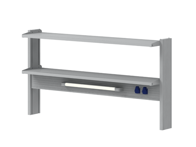 2 полки в алюминиевых рамках, блок электророзеток, люминесцентная лампа.