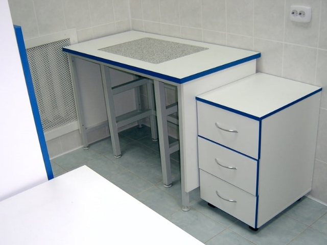 Весовой стол для лабораторий имеет столешницу из гранитной плиты, которая закреплена на платформе из резины. Устройство хорошо устраняет все помехи во время измерительных работ. Уровень конструкции регулируется посредством винтовых опор. Основание покрыто краской, его можно без проблем подвергать санитарной обработке.