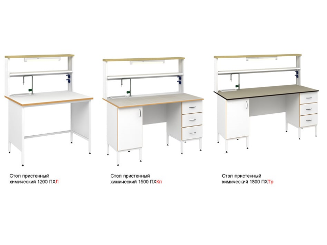 Пристенный лабораторный стол используется для проведения различных видов исследовательской работы. Имеются встроенные розетки в удобном расположении. Столы оборудованы тумбами для широкого использования: реактивы, приборы, посуда и т.д.