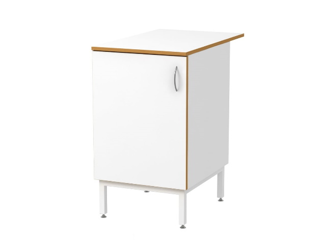 Корпуса тумб изготавливаются из ламинированной влагостойкой ДСП белого цвета. Края срезов закрыты кромочным пластиком ПВХ (АБС). В качестве опоры цельносварной металлический каркас высотой 200 мм, с регулируемыми по высоте опорами. Столешница - Ламинат.