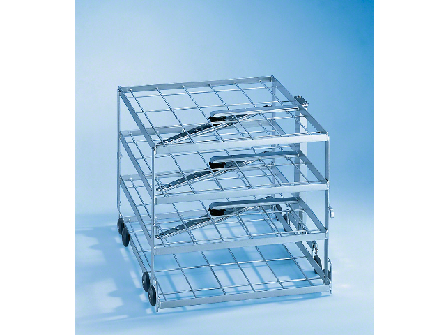Тележка для оптимальной загрузки сетчатых лотков на 4 уровнях.