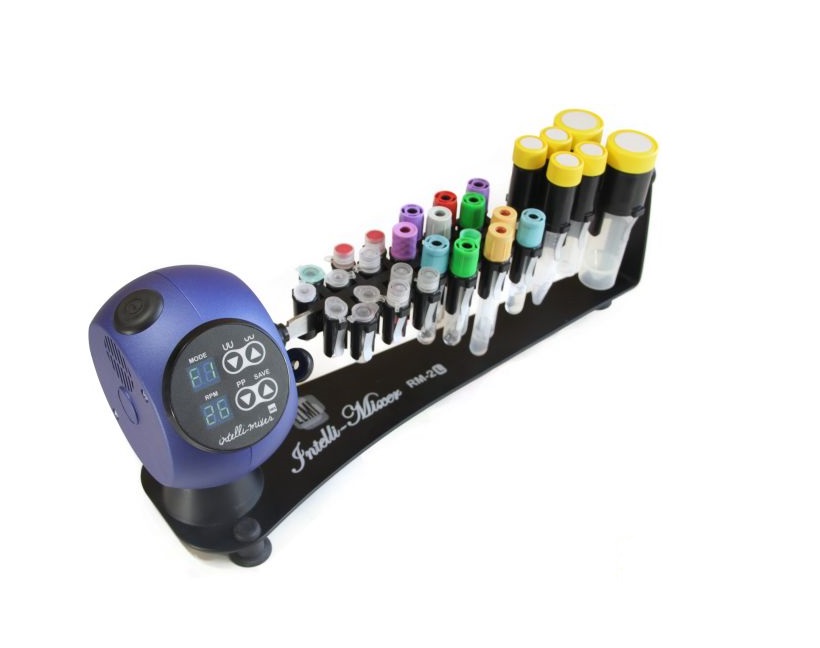 Ротационный перемешиватель ELMI RM1L-11х42 предназначен для перемешивания пробирок объемом от 0,5 мл до 50 мл, 3 размера рэков.