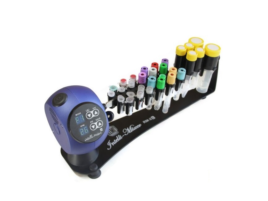 Ротационный перемешиватель ELMI RM1L-13х40 предназначен для перемешивания пробирок объемом от 0,5 мл до 50 мл, 3 размера рэков.