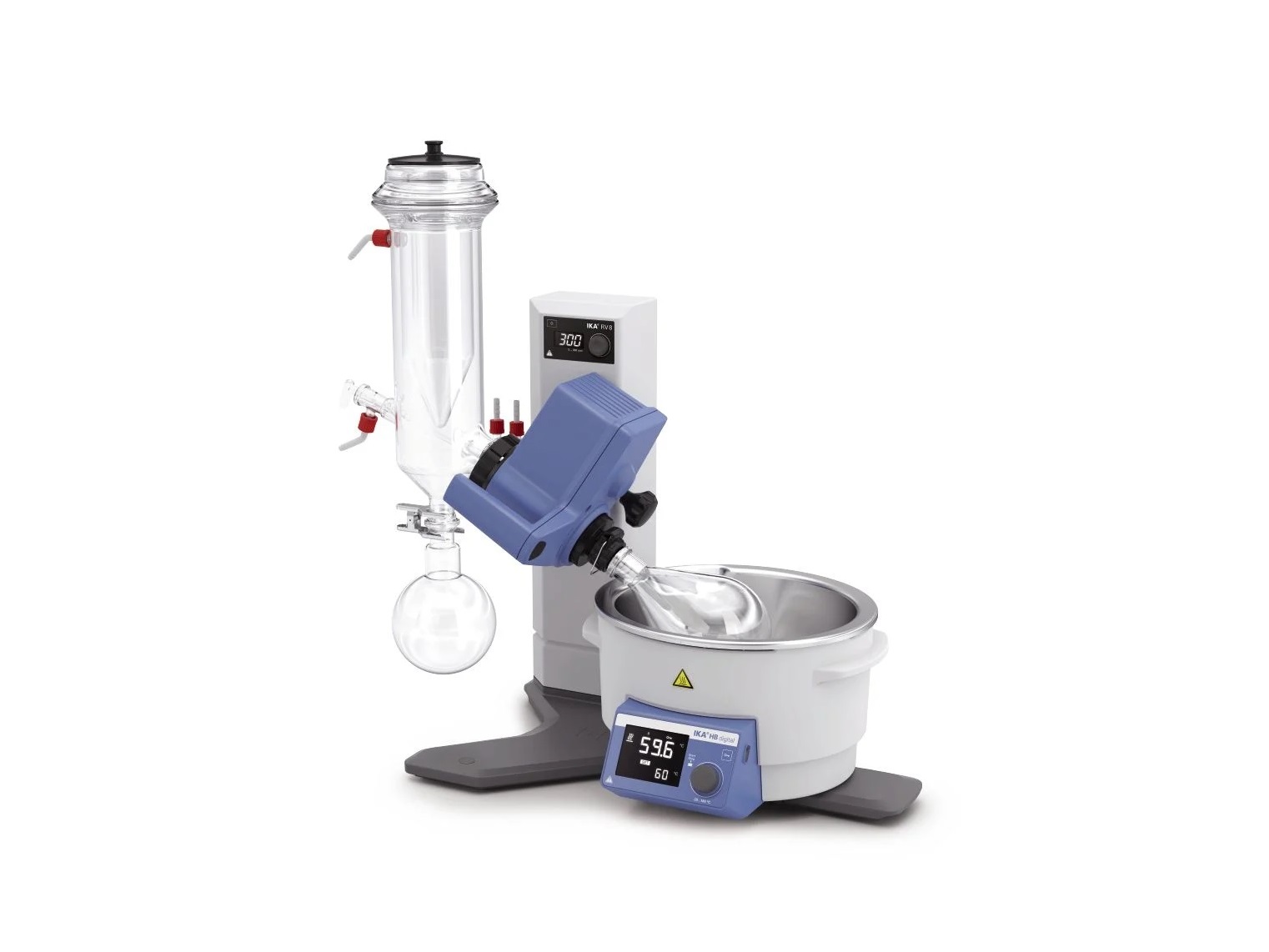 Ротационный испаритель RV 8 with Dry Ice Condenser, coated является ручной моделью базового уровня в семействе ротационных испарителей IKA.