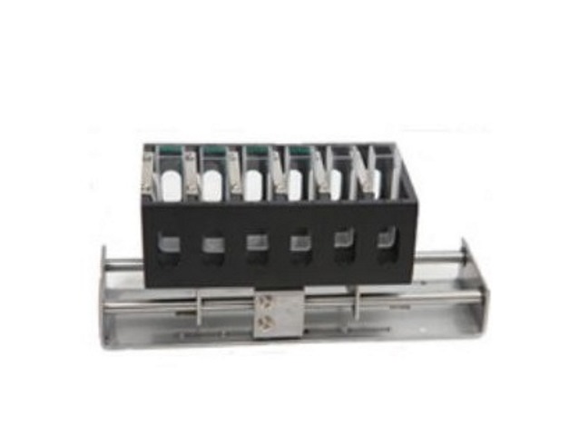 Кюветодержатель 6ти-позиционный устанавливается в спектрофотометр ПЭ-5400ВИ и ПЭ-5400УФ. Рассчитан на одновременную установку шести еврокювет (узкие кюветы внешней шириной 12,5 мм и длиной оптического пути от 5 до 50 мм).