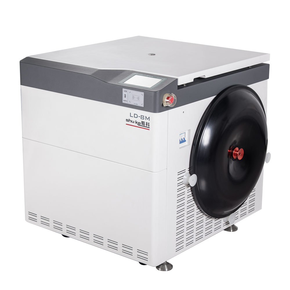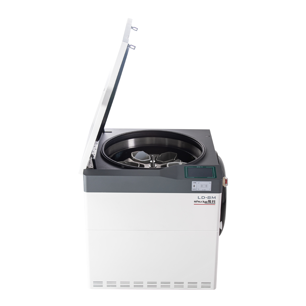 LD-8M — напольная охлаждаемая центрифуга большой вместимости с максимальной загрузкой 6×2400 мл. Позволяет одновременно центрифугировать 12 трансфузионных пакетов или 384 гематологические пробирки. Оснащена ЖК-сенсорным экраном для просмотра и настройки параметров. Операционная система SHUKE 3.0 обеспечивает расширенный функционал.