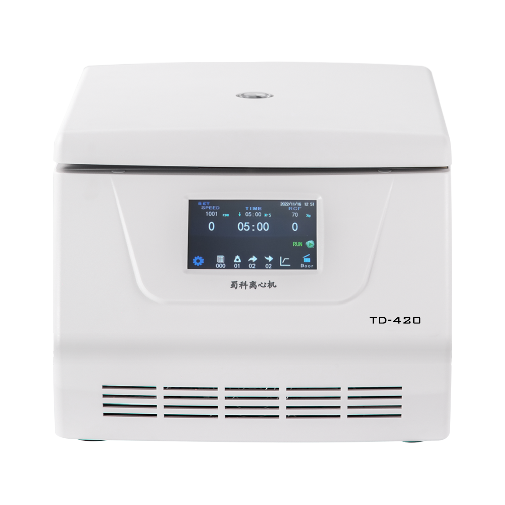 TD-420 обеспечивает исключительный комфорт пользователя и предлагает выбор из 4 роторов, включая самые популярные качающиеся роторы для пробирок объемом 15 мл и 50 мл. Центрифуга оснащена интеллектуальным сенсорным ЖК-экраном, которым удобно управлять даже в перчатках. Благодаря мощной операционной системе поддерживается многоступенчатое центрифугирование и возможно хранение до 1000 программ.