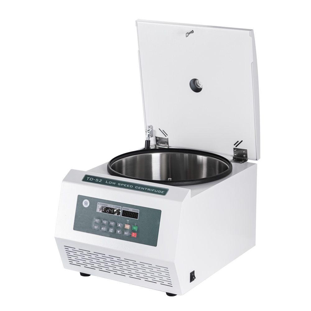 TD-5Z — это настольная центрифуга общего назначения. Она работает с пробирками объемом 15 мл, 50 мл и 100 мл, при этом за один раз можно центрифугировать до 32 пробирок по 15 мл. Центрифуга оснащена качающимся ротором, специально предназначенным для 48 вакуумных пробирок для забора крови диаметром 13 мм. Также имеется ротор для микропланшетов на 96 лунок.