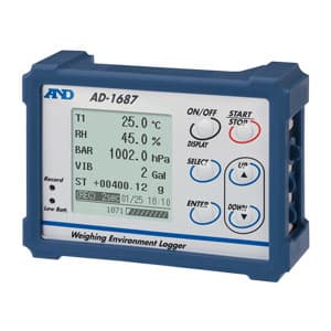 Регистратор внешних условий AD-1687 используется для измерения температуры, влажности, атмосферного давления и вибрации при работе с весами.
