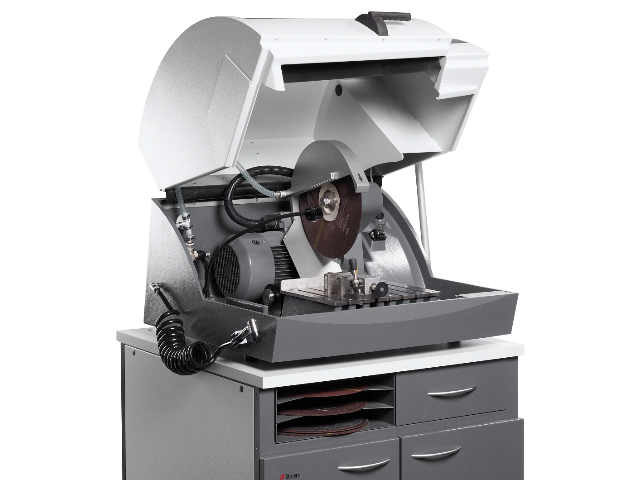 Ручной отрезной станок для резки материалографических образцов. Надежная конструкция, большой отрезной стол, просторная отрезная камера, мощный двигатель и эффективное охлаждение позволяют производить быстрое и точное отрезание образцов в лаборатории или на производстве.