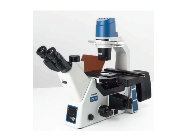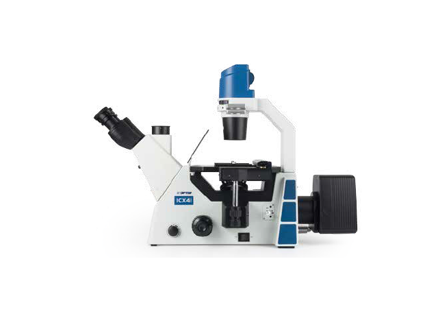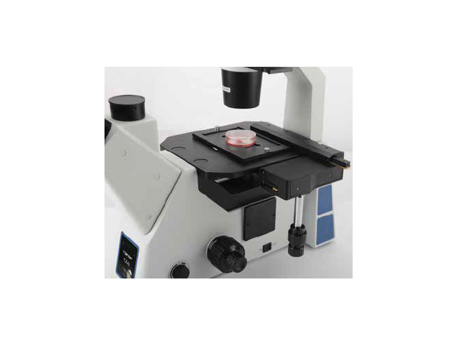 Микроскоп инвертированный биологический флуоресцентный на новом штативе эргономичной конструкции, и усовершенствованной оптической системой, предназначен для исследования культур тканей, осадков жидкостей и химических реакций в специальной лабораторной посуде в проходящем свете в светлом поле, по методу фазового контраста и в свете флюоресценции (люминесценции) при освещении снизу через объектив.