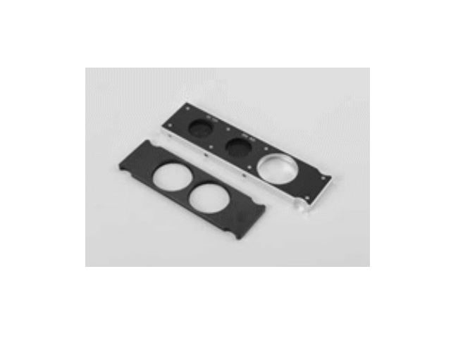 Поставляемый по дополнительному заказу накладной препаратоводитель со сменными вкладышами/держателями обеспечивает возможность установки предметных стекол, чаш Петри (D=35мм и D=54 мм) а также планшетов Терасаки (на 96 и на 24 лунки).