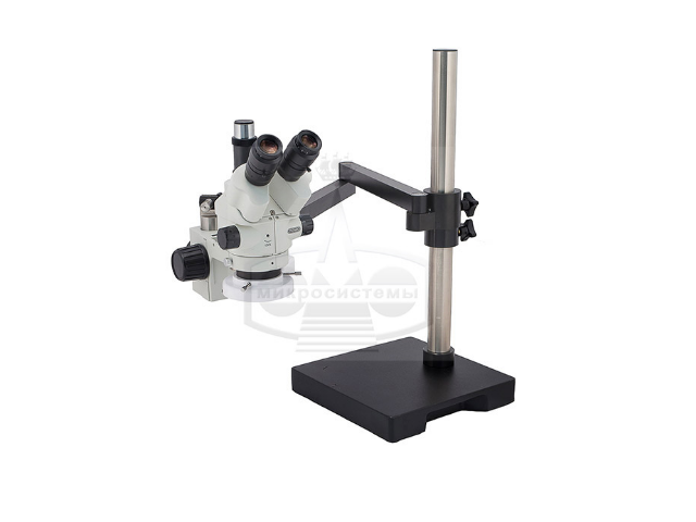 В своем составе имеет оптическую тринокулярную голову с плавной сменой увеличений и пару окуляров 10х, штатив. Дополнительные аксессуары расширяют возможности стереомикроскопа.