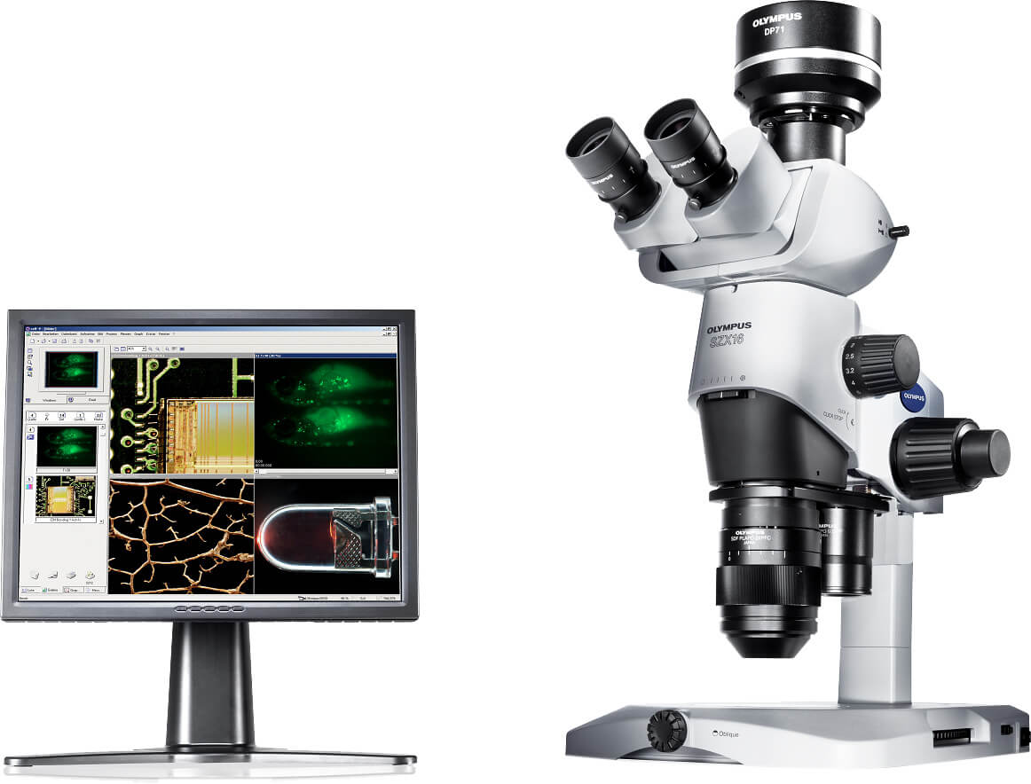Стереомикроскоп SZX16 исследовательского класса. Имеет непревзойденное разрешение 900 линий на мм благодаря безсвинцовой оптике класса апохромат.