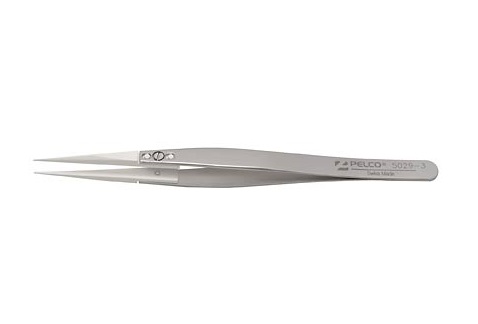Пинцет TED PELLA с керамическими губками, прямой, артикул 5029-3. Длина 141 мм. Материал - нержавеющая сталь. Концевая часть - 0.3 x 0.6 мм.
