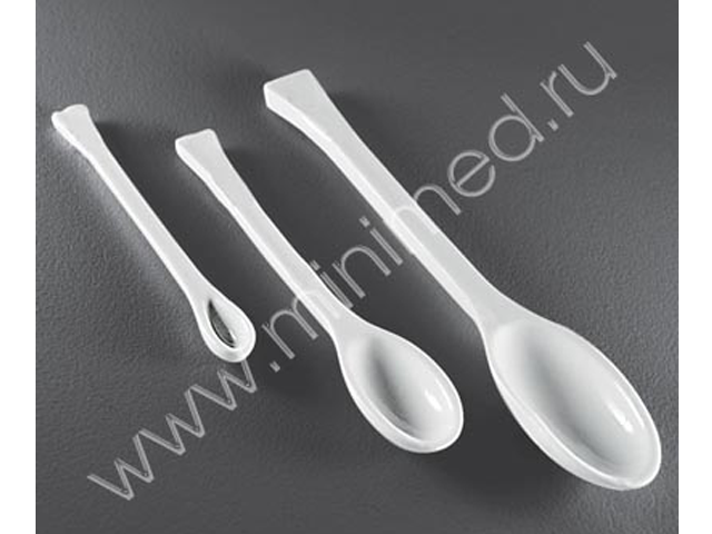 Используется для снятия  осадков с фильтров и других рутинных процедур. Также применяется для набора вещества при взвешивании на весах, растирания и т.п. Со всех сторон ложка покрыта глазурью.