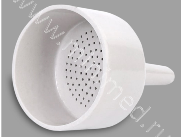 Используется в лабораториях совместно с колбами Бунзена для фильтрования жидкостей под вакуумом. Воронка покрыта глазурью за исключением верхней кромки.