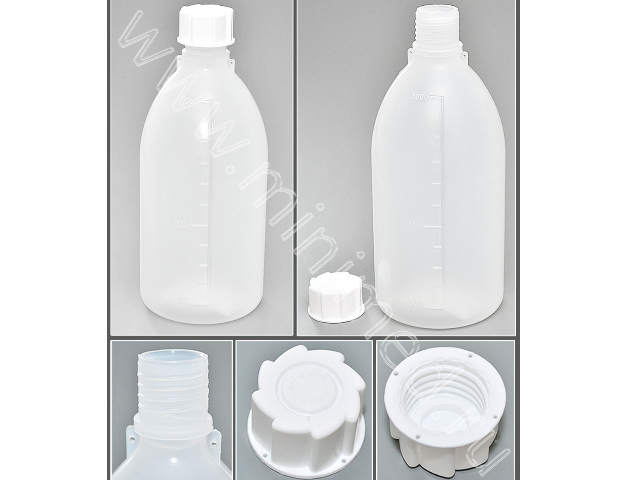 Градуированная бутылка с узким горлом идеальна для транспортировки токсичных образцов. Обладает высокой химической устойчивостью к разбавленным и концентрированным кислотам, к щелочам. Может быть защищена от несанкционированного открытия посредством использования соответствующих петелек на ободке. Изготовлена из полипропилена. Автоклавируется при температуре +121С.
