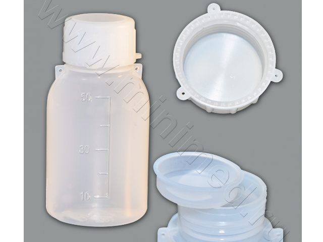 Бутылка снабжена вкладышем, обеспечивающим герметичность, и специальными петельками, которые можно использовать для пломбировки или крепления информационных табличек. Имеет рельефную градуировку. Устойчива к действию щелочей любых концентраций, органических кислот, концентрированных соляной и плавиковой кислот; разрушается азотной кислотой, хлором и фтором.