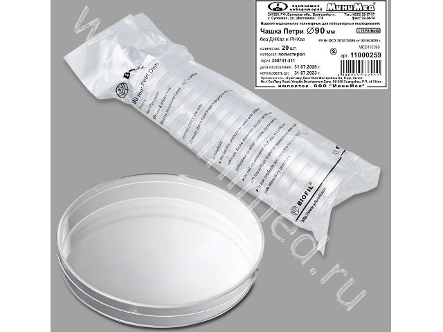 Чашка Петри предназначена для посева микроорганизмов на культуральной среде. Изготовлена из оптического полистирола. Односекционная, вентилируемая. Стерилизуется гамма-излучением. Апирогенна, без ДНКаз и РНКаз.