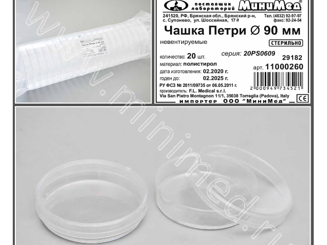 Предназначена для идентификации бактерий на культуральной среде. Чашки Петри изготовлены из полистирола высокой прозрачности, без вентиляционных отверстий. Стерилизуется ионизирующим излучением (Бета-лучи).