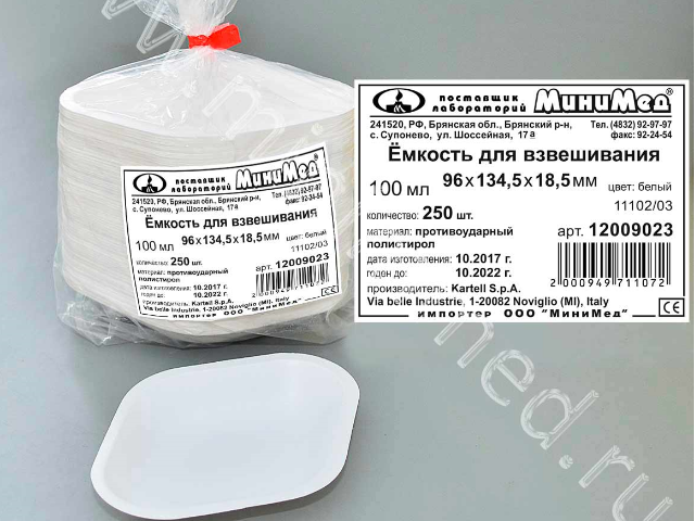 Емкость для взвешивания V=100 мл, 96*134.5*18.5 мм, цвет белый, противоударный п/с