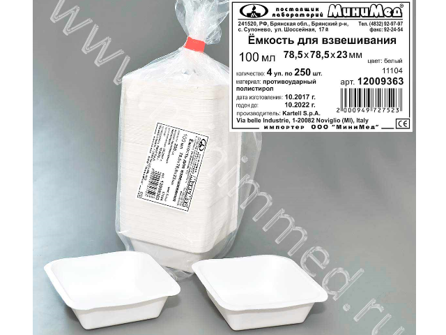 Емкость для взвешивания V=100 мл, 78,5*78,5*23 мм, цвет белый, противоударный п/с