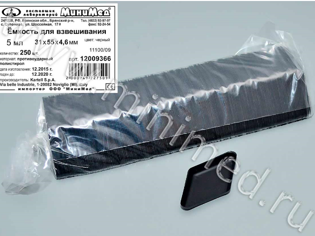 Емкость для взвешивания V= 5 мл,31*55*4,6 мм, цвет черный, противоударный п/с