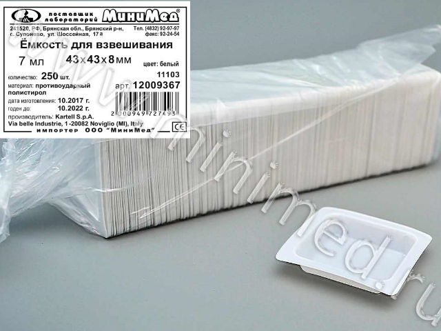 Емкость для взвешивания V= 7 мл, 43*43*8мм, цвет белый, противоударный п/с