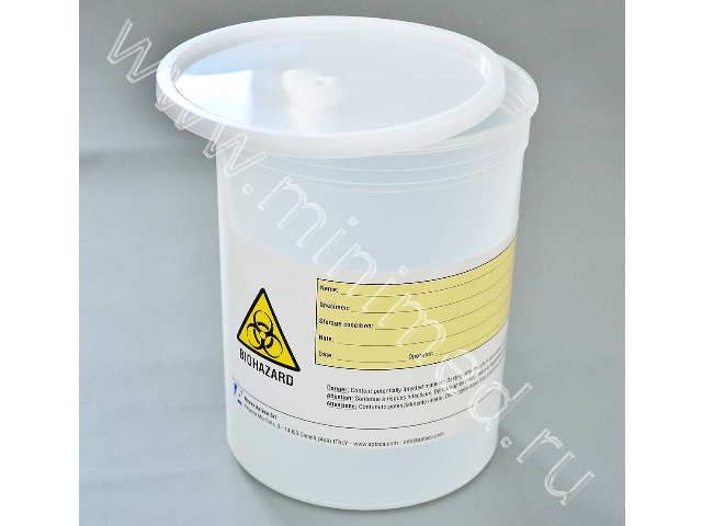 Предназначен для хранения и транспортировки операционного материала в патанатомическое отделение для гистологических исследований. Изготовлен из ультрачистого полипропилена. Знак «BIOHAZARD» на этикетке свидетельствует о возможной биологической опасности транспортируемого образца. Имеется информационное поле для записи данных об образце. Нестерильный.