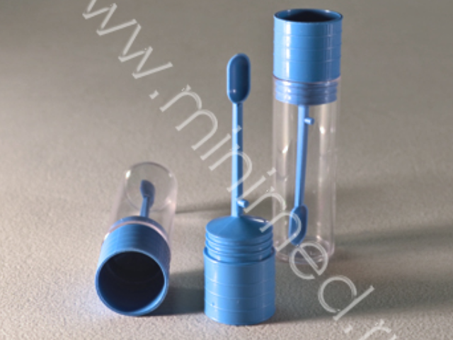 Предназначен для взятия, хранения и транспортировки фекальных и иных твердых или полужидких биоматериалов в лабораторию с целью проведения общеклинических анализов. Нестерильный. Материал контейнера - полистирол, крышка - полипропилен. Снабжен герметично закрывающейся пробкой с вмонтированной ложкой.