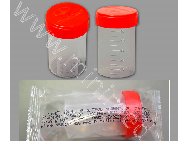 Обеспечивает полную герметичность при транспортировке биологического материала. Материал контейнера - полипропилен, крышки - полиэтилен. Имеет градуировку и матовое окошко для записи. Нестерильный.