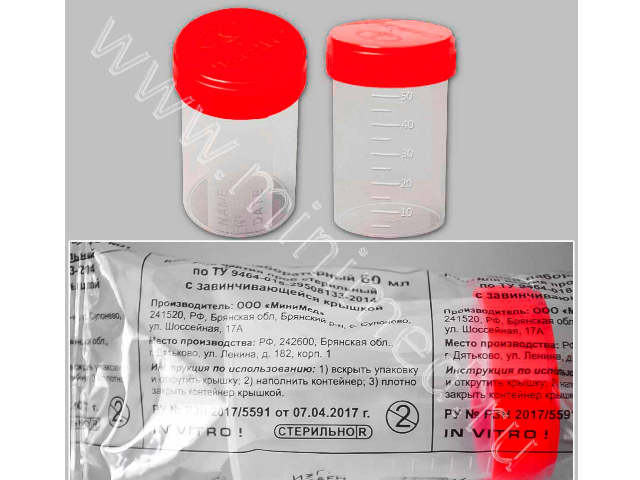 Обеспечивает полную герметичность при транспортировке биологического материала. Материал контейнера - полипропилен, крышки - полиэтилен. Имеет градуировку и матовое окошко для записи. Стерильный.