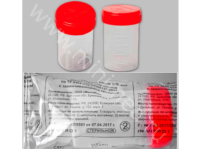 Обеспечивает полную герметичность при транспортировке биологического материала. Материал контейнера - полипропилен, крышки - полиэтилен. Имеет градуировку и матовое окошко для записи. Стерильный.