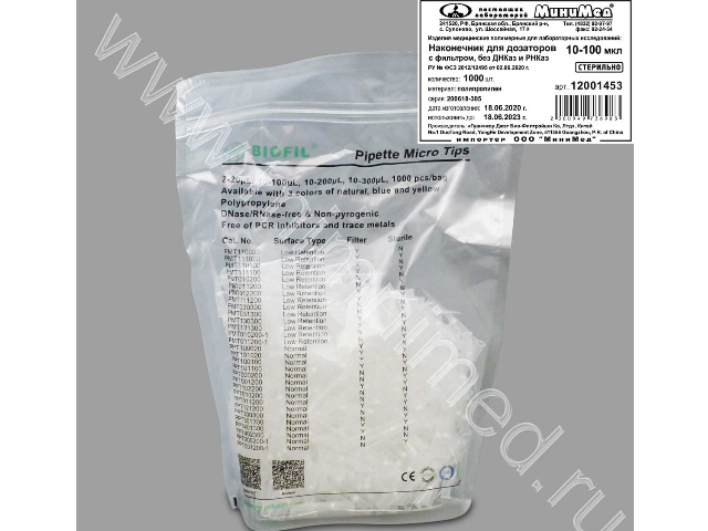 Наконечники предназначены для отбора и переноса проб с помощью дозаторов при проведении ПЦР-анализа. Наконечники стерильные, стерилизованы гамма-облучением. Наличие фильтра позволяет снизить риск загрязнений и ложность результатов, вызванных аэрозольной контаминацией наконечников. Градуированные(20-50-100 мкл). Наконечники без ДНКазы, РНКазы и пирогенов.
