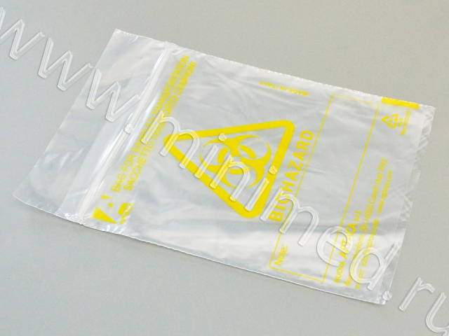 Пакеты для хранения и транспортировки ёмкостей ( пробирка, контейнер и др.) с пробами биологических материалов имеют два отделения : одно для упаковки самих образцов (бесцветное, прозрачное с молнией), второе- для сопровождающих документов ( направление), открытое. Пакеты изготовлены из ПЭ. Помимо использования для упаковки ёмкостей с биологическими пробами прекрасно подходят для самых разных целей, в том числе - для упаковки образцов продукции или компонентов диагностических наборов.