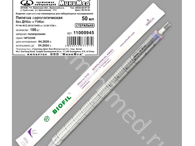 Пипетки серологические для ПЦР, одноразовые, изготовлены из кристаллического полистирола. Стерилизованы гамма-излучением. Цветовая маркировка кодирует соответствующий номинал согласно международным стандартам. Пипетки апирогенны, без ДНКаз и РНКаз, не обладают гемолитическим и цитоксическими действиями. Градуировка на пипетки нанесена черной, устойчивой к стиранию краской.