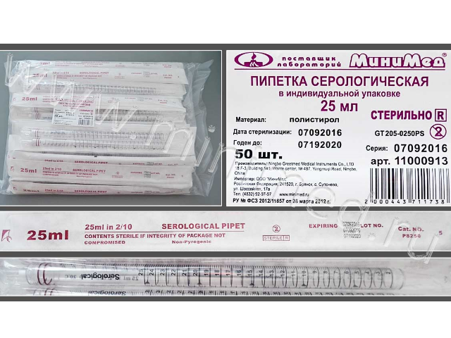 Пипетка серологическая 25 мл.,стерильная,инд.уп.,уп.50 шт./кор.200шт.,п/с