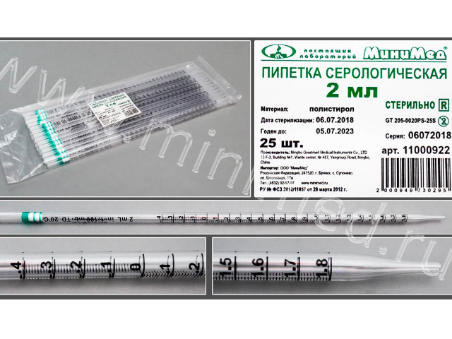 Пипетка серологическая 2 мл.стерильная,уп.25 шт., п/с