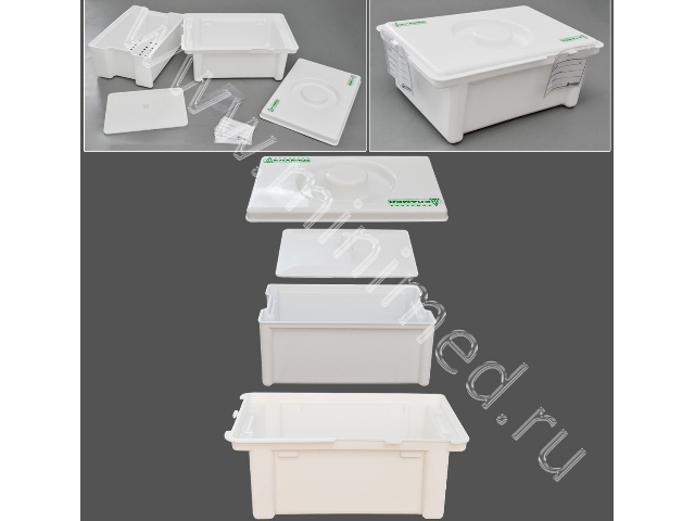Предназначен для дезинфекции и предстерилизационной очистки изделий медицинского назначения в лечебно-профилактических учреждениях. Емкость-контейнер состоит из корпуса в виде емкости прямоугольной формы с бортиками сверху для удобства переноски и для плотного прилегания крышки, перфорированного поддона, пластины для погружения в раствор легких изделий. В качестве принадлежностей в комплект поставки входят ДВА КАРМАНА. На внешней стороне бортиков корпуса юмеются две зоны для размещения карманов под бумажный носитель служебной информации.