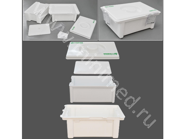 Предназначен для дезинфекции и предстерилизационной очистки изделий медицинского назначения в лечебно-профилактических учреждениях. Емкость-контейнер состоит из корпуса в виде емкости прямоугольной формы с бортиками сверху для удобства переноски и для плотного прилегания крышки, перфорированного поддона, пластины для погружения в раствор легких изделий. В качестве принадлежностей в комплект поставки входят ДВА КАРМАНА. На внешней стороне бортиков корпуса юмеются две зоны для размещения карманов под бумажный носитель служебной информации.