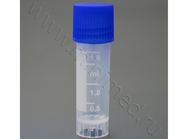Предназначена для работ при температурах от -196 до +121° С, в т. ч. для хранения образцов в жидком азоте. Крышка с внутренней резьбой подходит для работы с особо опасными биоматериалами. На пробирку нанесена белая маркировка до объема 1,8 мл, цена деления 0,5 мл, имеется окошко для записи. Пробирка с юбкой устойчивости.