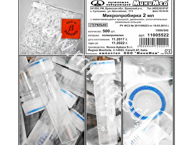Предназначены для взятия микропроб сыворотки крови и других биологических жидкостей, их хранения при температуре -90°С, и транспортировки в медицинское учреждение. Пробирка изготовлена из полипропилена. Имеет деления, окно для записи информации и уплотнительное резиновое кольцо. Кольцо сделано из термопластичного синтетического каучука - thermoplastic synthetic rubber o-ring.