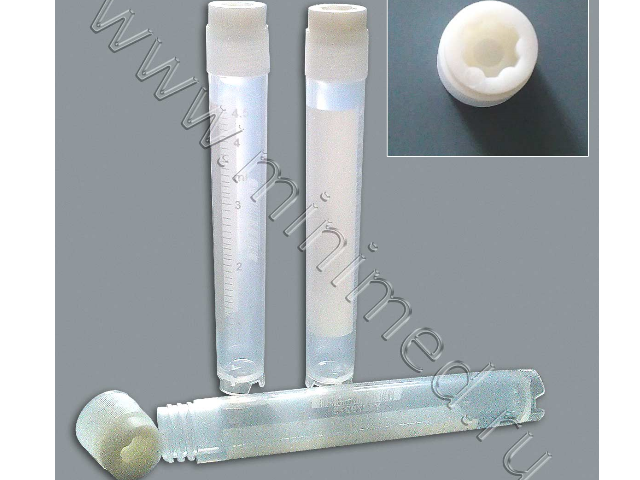 Предназначена для работ при температурах от -196 до +121° С, в т. ч. для хранения образцов в жидком азоте. Крышка с внутренней резьбой и уплотненным кольцом подходит для работы с особо опасными биоматериалами. На пробирку нанесена белая маркировка до объема 4,5 мл, цена деления 0,1 мл, имеется окошко для записи, юбка устойчивости. Общий объем пробирки 5 мл. Изготовлена из полипропилена.