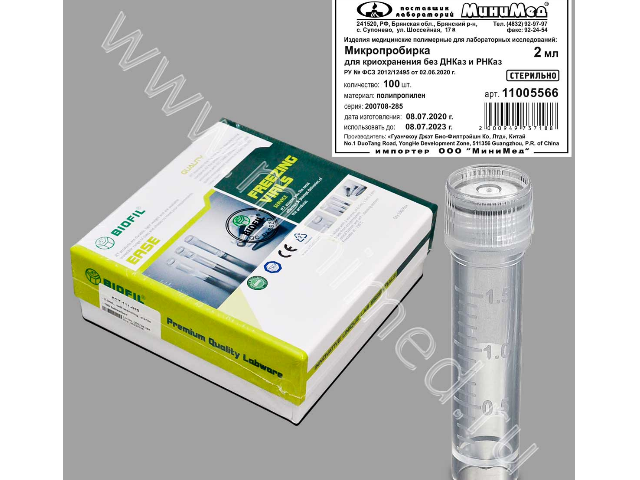 Микропробирка для криохранения 2 мл, с основанием,стерильная, без ДНКаз и РНКаз,п/п, уп.100 шт./кор.1000шт.